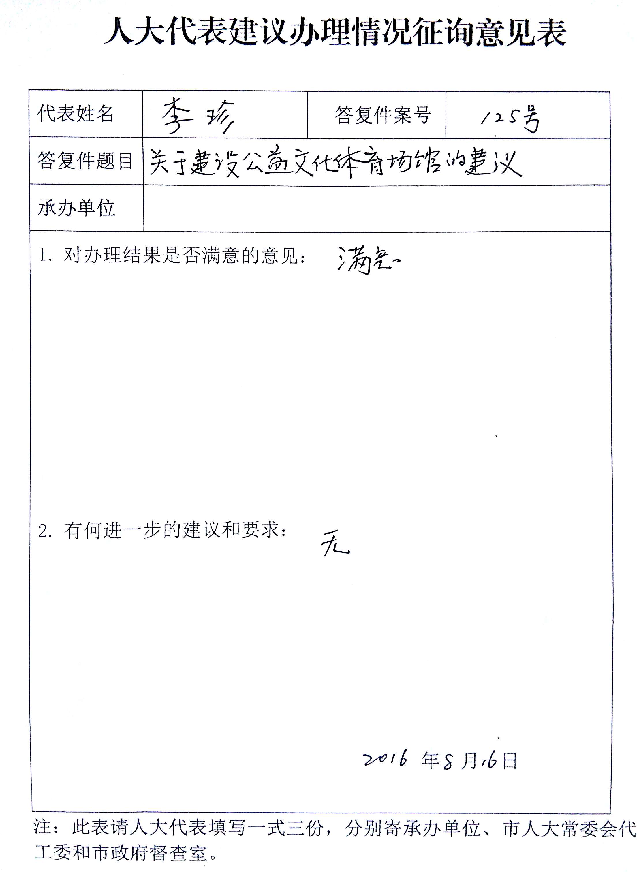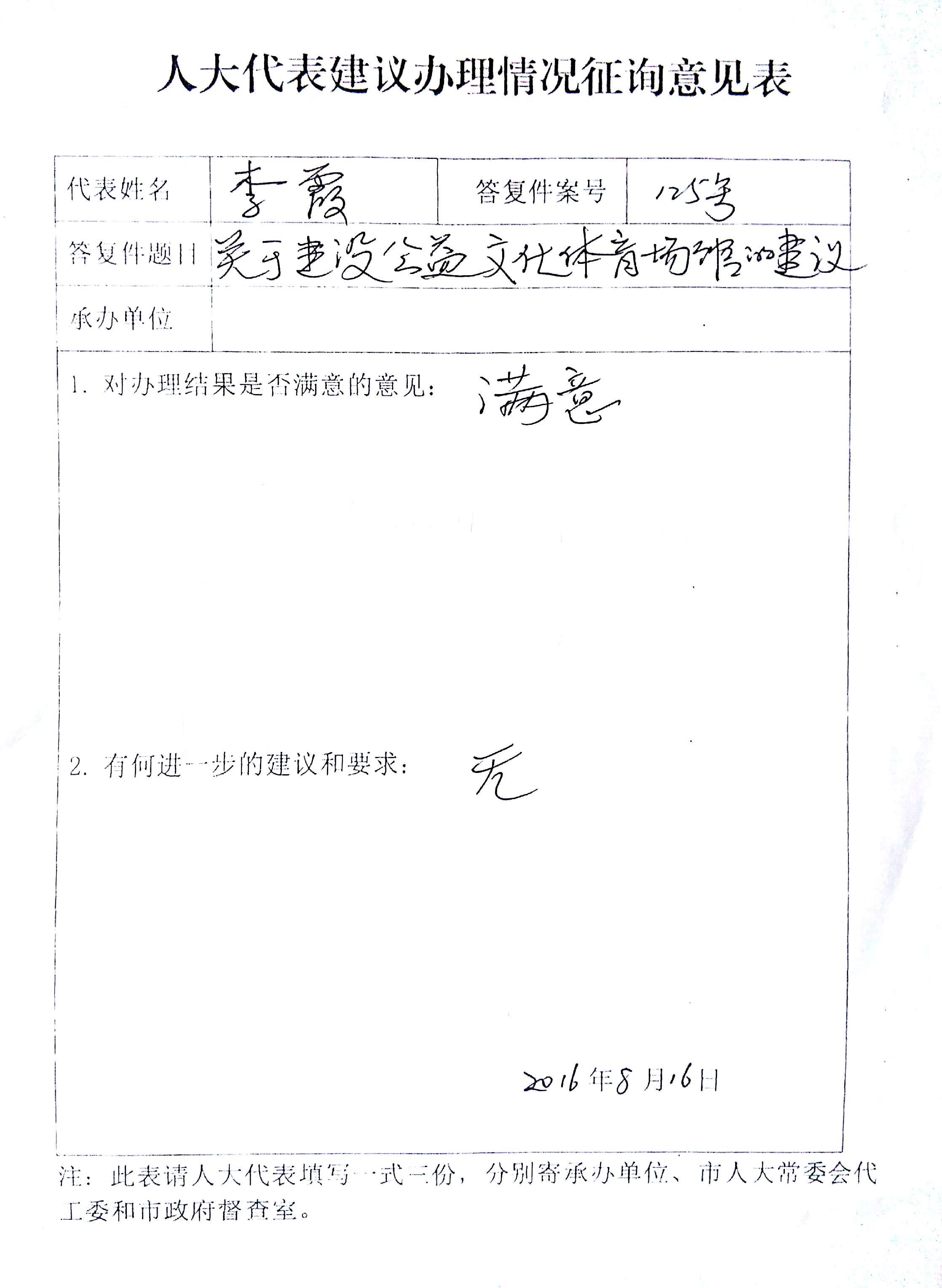 〔2016〕137号关于对市人大三届六次会议2016第125号建议的答复