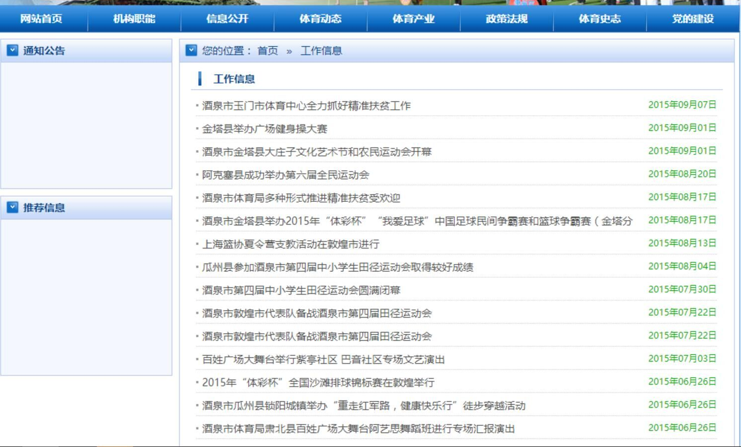 体育信息内容;二是向省体育局和市委、市政府报送政务信息;三是向各类人群印制和发送体育宣传资料;四是依托本局门户